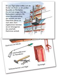 Dachhandwerker können das! - Baustellengeschichten für Kinder, Kunden und den Nachwuchs. Das ist neu: Erstmals zeigt ein liebevoll gestaltetes Bilder- und Vorlesebuch dem Nachwuchs, was Dachhandwerker können und wie sie ihre Fähigkeiten auf Baustellen oder in der Freizeit einsetzen. Auf 24 Seiten erleben die Geschwister Laura und Nick gemeinsam mit Dachprofi Robin spannende Abendteuer. Die Kinder lernen bei einer Baustellenbesichtigung sowie einer vorausgegangenen Bachüberquerung den Umgang mit Werkzeugen wie Wasserwaage, Säge oder Hammer kennen. Außerdem erfahren sie wie Dächer saniert und Dachrinnen angebracht werden, doch damit nicht genug: Das lehrreiche Minibuch entführt kleine und große Handwerker in die Welt der Dachlandschaften und weckt deren Neugierde mit zahlreichen Beispielen aus dem Dachhandwerker-Alltag. Besonders aufmerksame Zuhörer und Leser können am Schluss sogar einige Rätsel lösen. Keine Bange: sogar kleine Dachhandwerker können das!