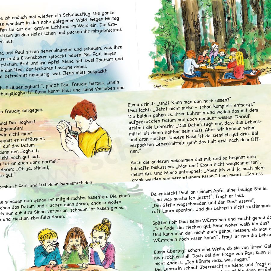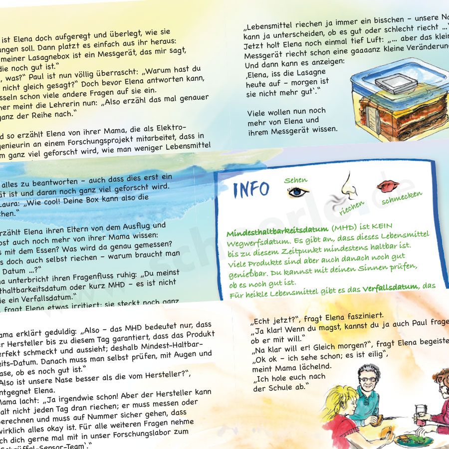 Im Laufe der Geschichte lernen die Kinder, dass unsere Nase ein wichtiger Indikator dafür ist, ob Lebensmittel noch genießbar sind. Sie entdecken auch, dass es Möglichkeiten gibt, den Frischegrad von Lebensmitteln zu messen und zu berechnen, um keine guten Lebensmittel wegzuwerfen.